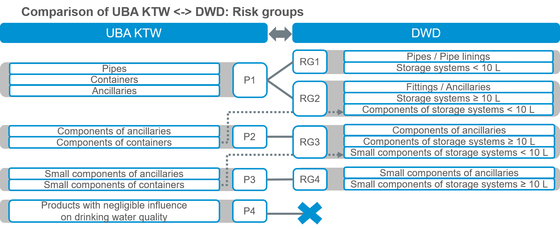 DWD no longer has a risk group for products with a negligible impact on drinking water quality (KTW: P4). Therefore, all products and components that come into contact with drinking water must be tested and evaluated.