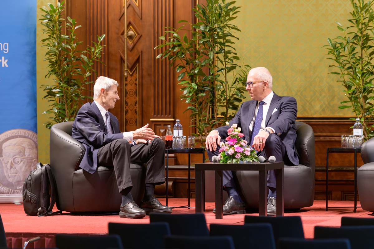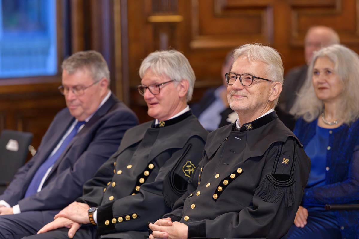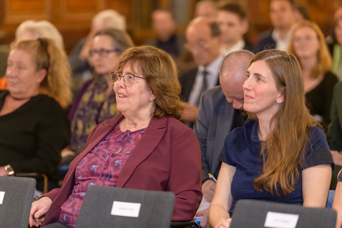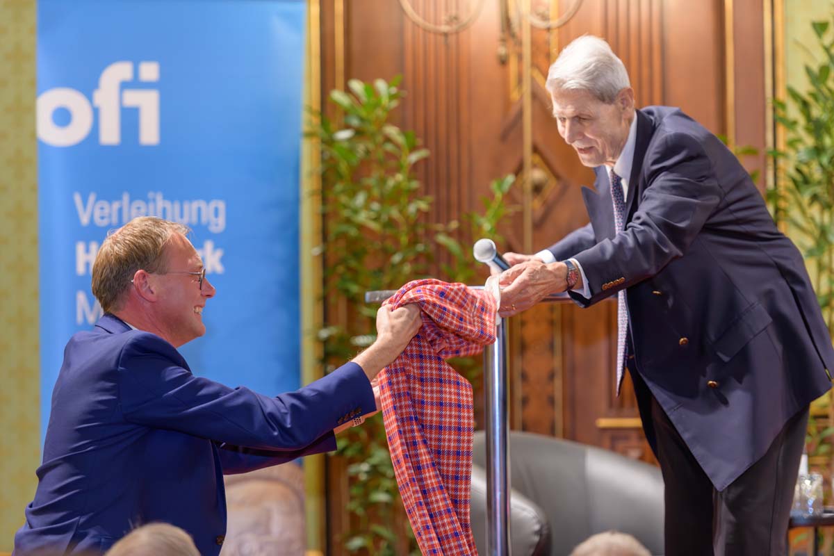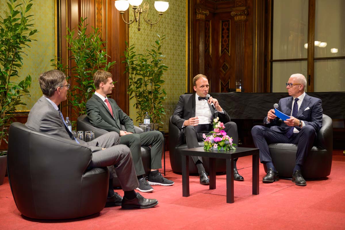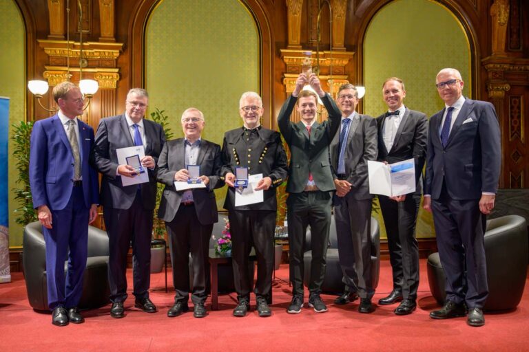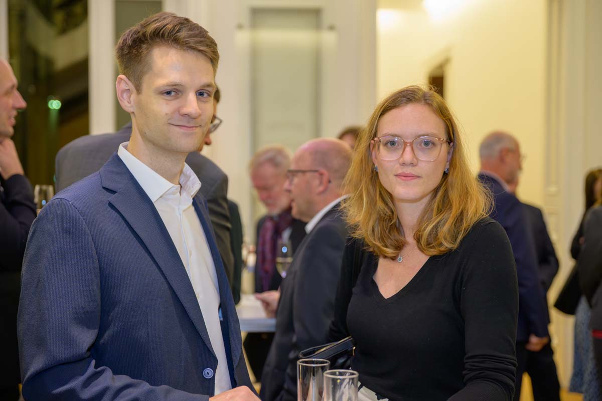 Nadja Mader führte durch einen stimmungsvollen Abend im Haus der Ingenieure, zu dem zahlreiche Gäste im Festsaal zusammenkamen. Neben der feierlichen Verleihung der H.F. Mark Medaillen und des H.F. Mark Sustainability Awards hatten wir mit Odorich von Susani einen besonderen Gast bei uns. Er war einer der letzten Studenten von Mark am Polytechnic Institute of Brooklyn und arbeitete später auch beim Chemiekonzern Du Pont gemeinsam mit dem „Vater der Polymere“.