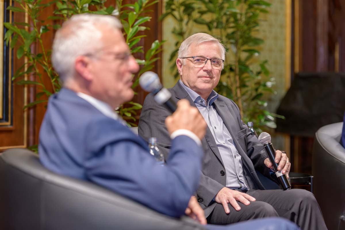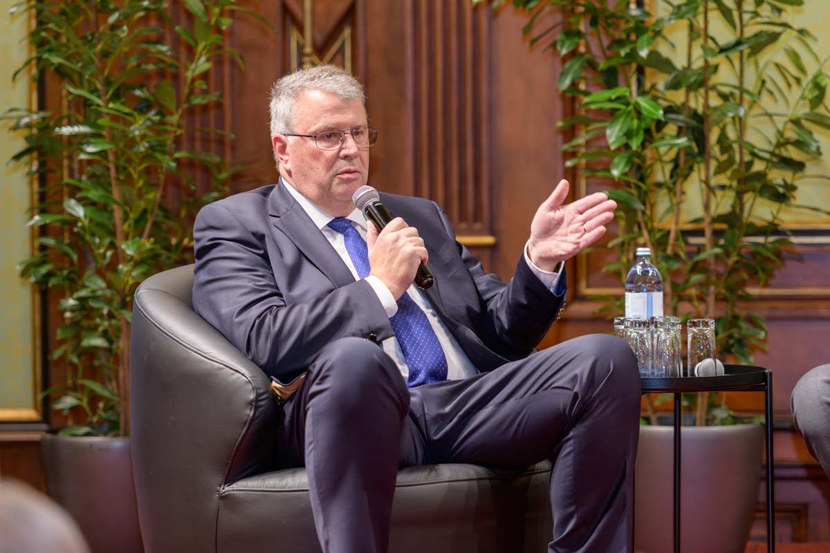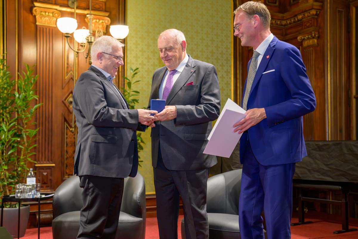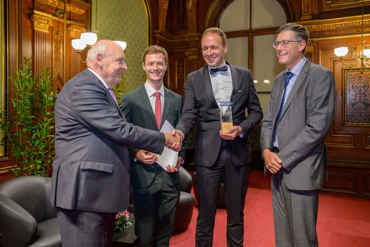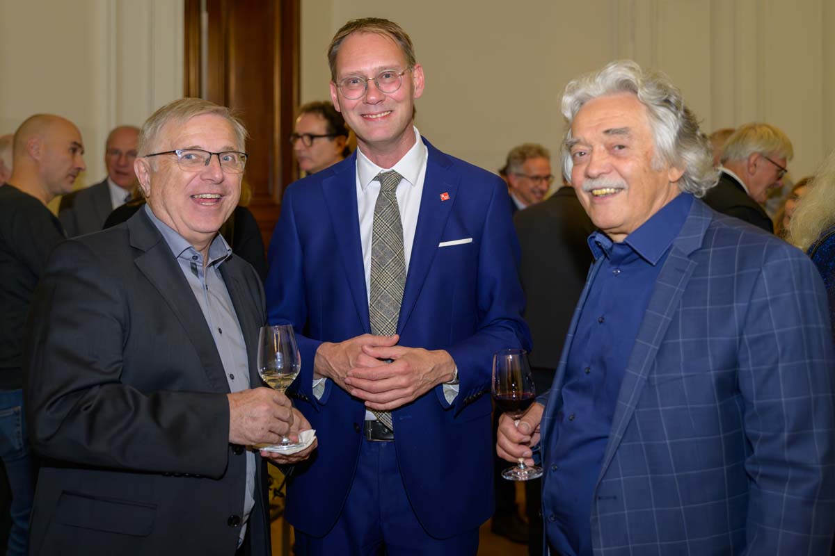 Nadja Mader führte durch einen stimmungsvollen Abend im Haus der Ingenieure, zu dem zahlreiche Gäste im Festsaal zusammenkamen. Neben der feierlichen Verleihung der H.F. Mark Medaillen und des H.F. Mark Sustainability Awards hatten wir mit Odorich von Susani einen besonderen Gast bei uns. Er war einer der letzten Studenten von Mark am Polytechnic Institute of Brooklyn und arbeitete später auch beim Chemiekonzern Du Pont gemeinsam mit dem „Vater der Polymere“.