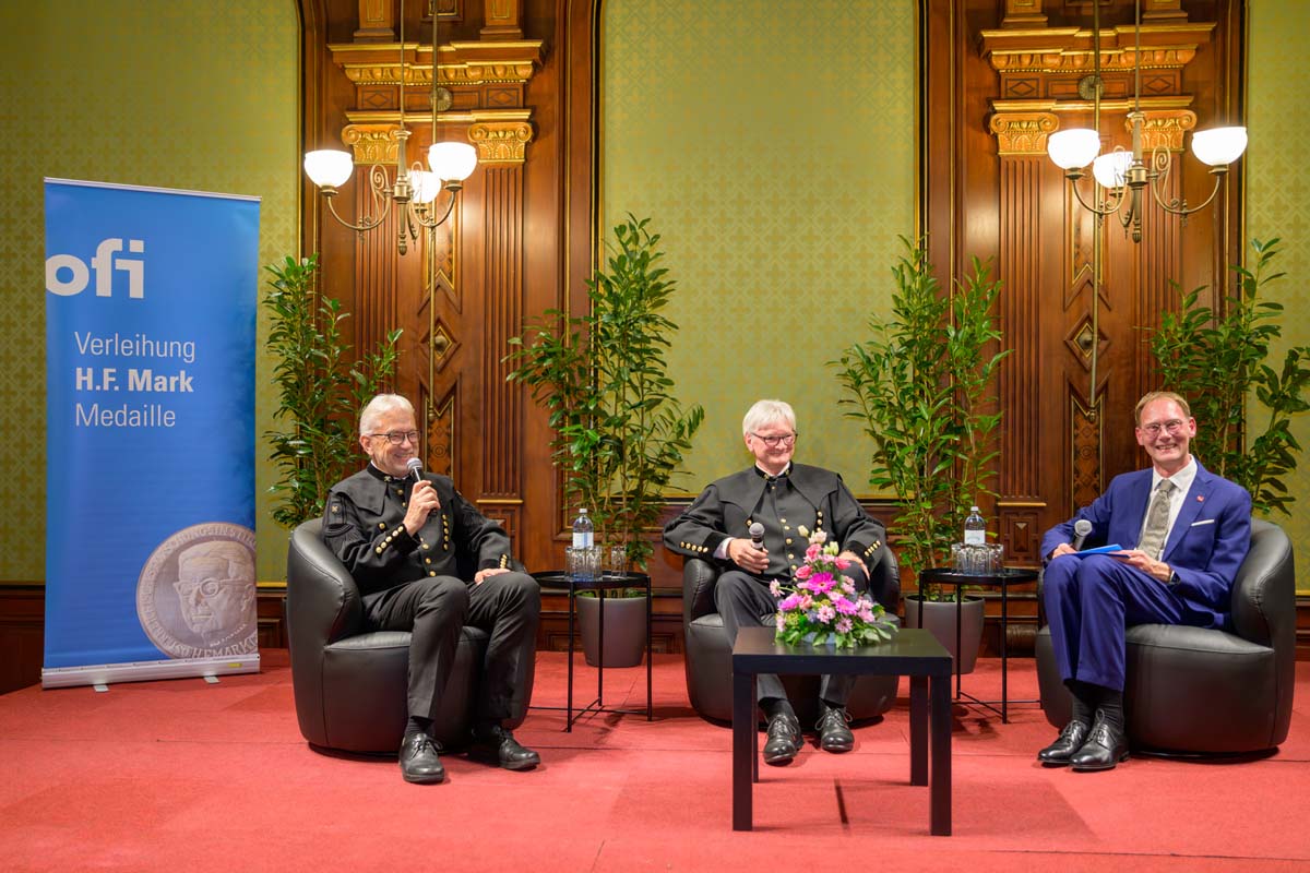 Die drei H.F. Mark Medaillen wurden feierlich an Univ. Prof. DI Dr. Clemens Holzer (Montanuniversität Leoben), KR Dr. Ralph Theuer (KremsChem Holding) und DI Dr. Dietmar Loidl (ehem. OFI Geschäftsführer) verliehen. Wir gratulieren noch einmal ganz herzlich!